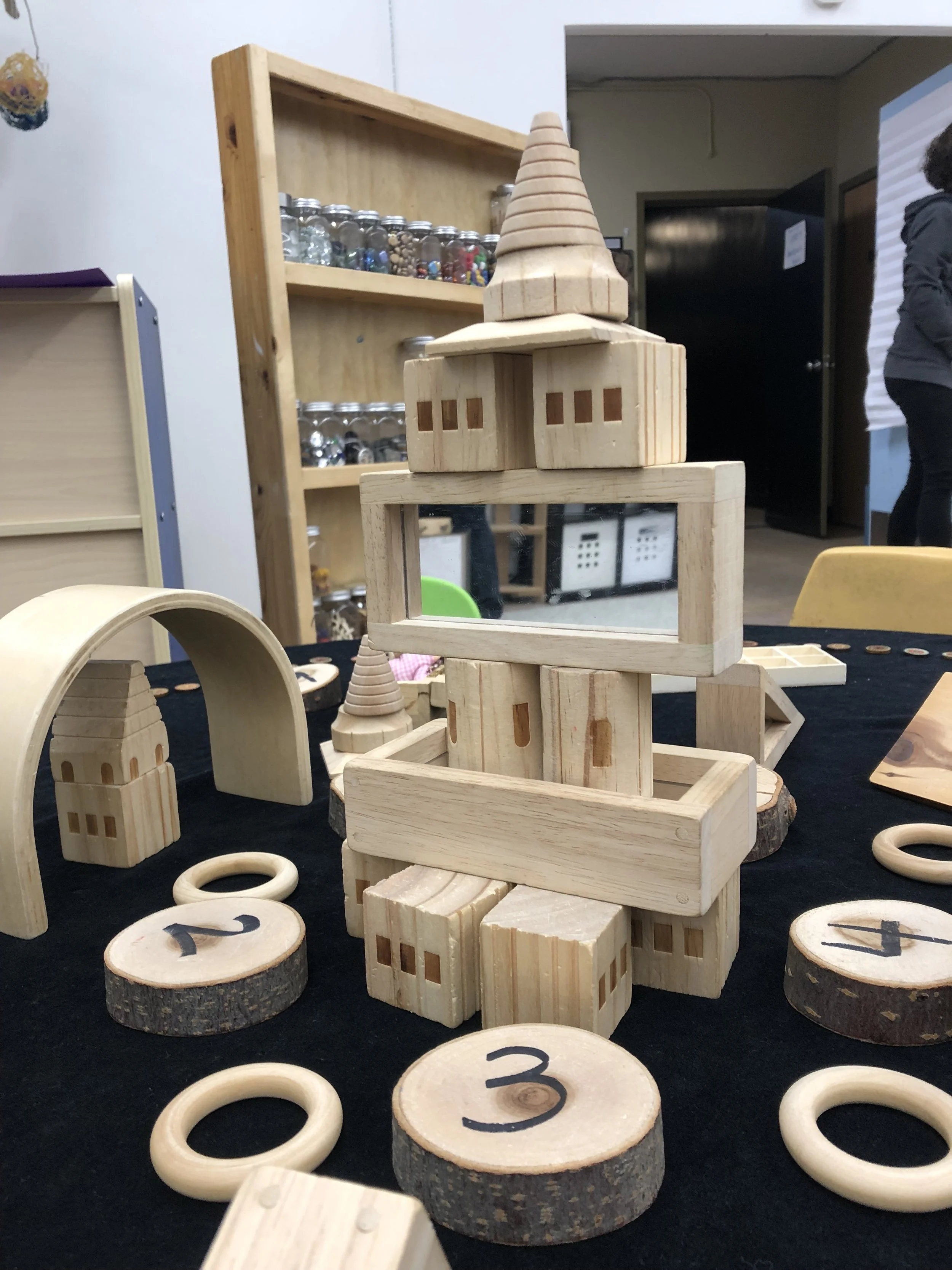 We created puppets of the characters from the book and set up a shadow box. The children all crowded around the little shadow box area, some watched the show but most wanted to be the ones creating the shadows. So we also set up a projector against a white sheet and the children began making shadows with their whole bodies. Some of the children wanted to go behind the sheet - we wondered what they were looking for back there.